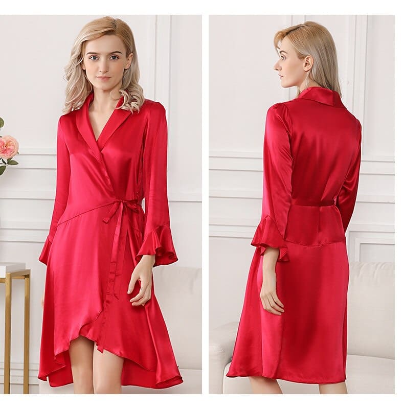 Prendre du temps pour soi et son corps est essentiel, surtout après une longue journée de travail. Avec ce magnifique peignoir en soie rouge, vous pouvez vous détendre et vous échapper quelques heures des vêtements serrés du quotidien…