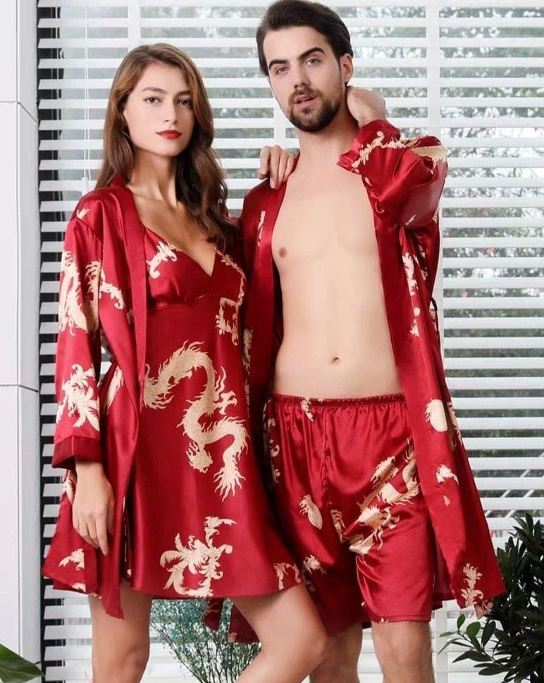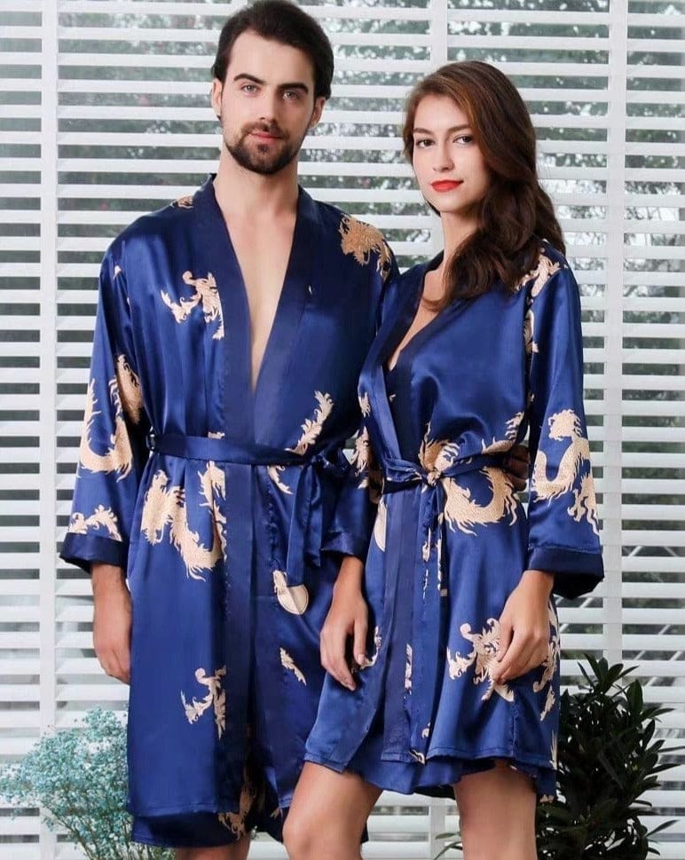 Cet ensemble de nuit composé d’une nuisette et d’un kimono vous offrira à la fois élégance et passion. Pour les messieurs, retrouvez son homologue masculin dans notre collection de peignoirs en satin pour homme !